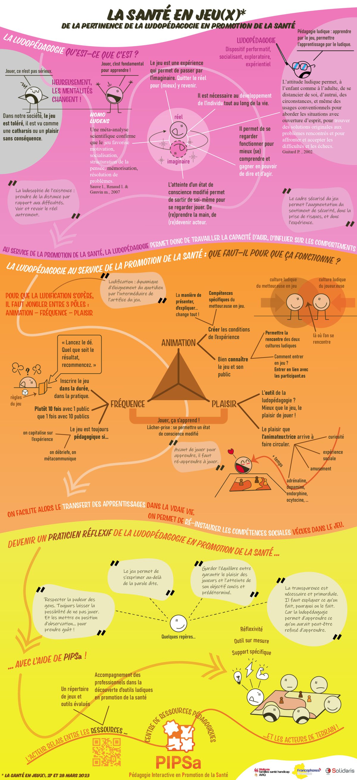 Ici pour PIPSa, Pรฉdagogie interactive en Promotion de la Santรฉ. Lors de l’รฉvรฉnement « La Santรฉ en Jeu(x) » sur deux jours courant mars 2023, il รฉtait nรฉcessaire d’augmenter la visibilitรฉ de l’รฉvรฉnement ET de mettre en avant la ludopรฉdagogie au service de la promotion de la santรฉ.