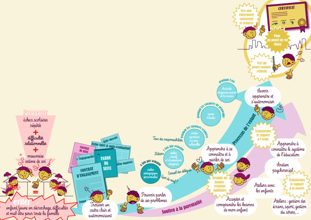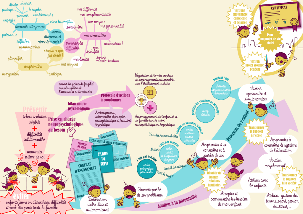 J’ai eu la chance et le plaisir d’accompagner Couleurs Jeunes ASBL, qui lutte contre le dรฉcrochage scolaire ร Anderlecht. Karima, la coordinatrice, m’a accordรฉ toute sa confiance pour mettre en couleurs ce projet riche, beau et complexe, qu’on ne peut vraiment pas rรฉsumer ร une รฉcole des devoirs !