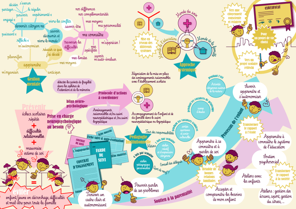 Cโest vraiment un bon travail qui donne sens ร ta sollicitation : une facilitation visuelle (mais oui!) qui donne corps ร un plan et au suivant. Cela exemplifie et amplifie le rendu de nos objectifs et actions prรฉcรฉdent.e.s. Cela rend manifeste aussi les trajectoires et les couleurs qui nous guideront pour les prochaines annรฉes.